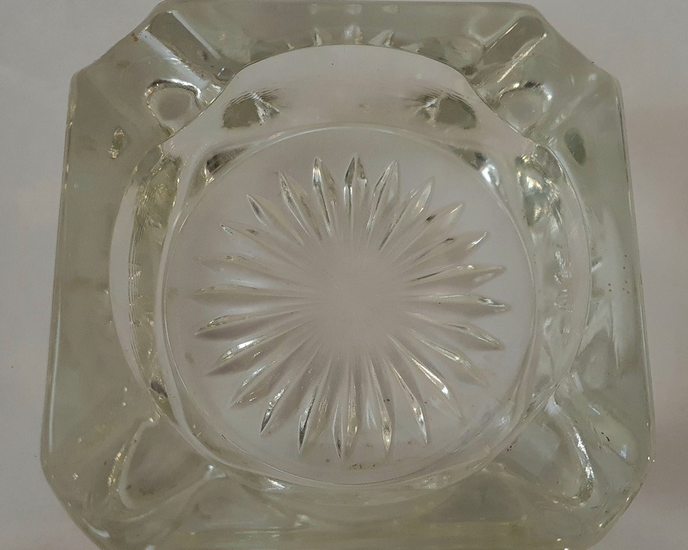 Γυάλινο τασάκι, ύψο 4,5cm, μήκος πλευράς 11,5cm