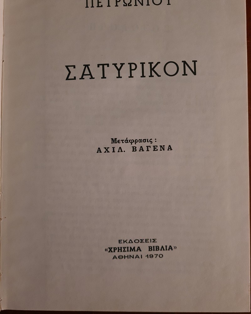 Τίτλος “Σατυρικόν”, Συγγραφέας Πετρωνίου, Ελληνική Έκδοση 1970
