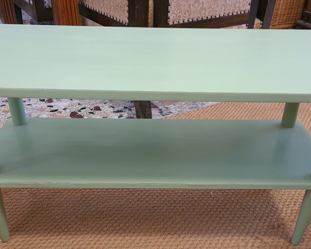 Ξύλινο τραπέζι πλήρως αναπαλαιωμένο με ράφι, ύψος 41cm, μήκος 72cm, πλάτος 39cm